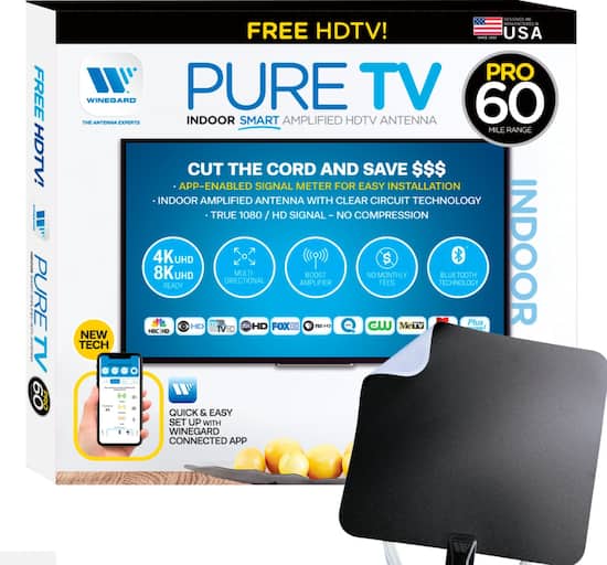 Winegard Puretv Pro 60 Indoor Smart Amplified Hdtv Antenna Integrated Channel Finder Black And White Bbxp60r Best Buy